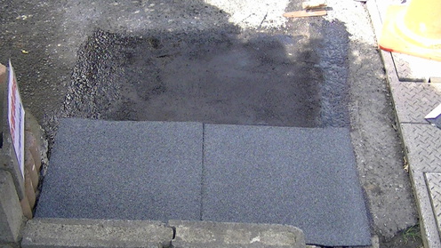 穴埋め補修の仕上げです。マットペーブを上に被せて完了です。見映えもよくなります。